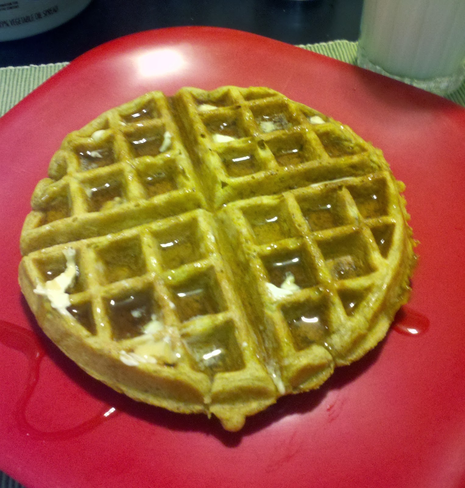 Also, I made these pumpkin waffles a little while ago. They were amazingly delicious, thick and pumpkin-y. Seriously, you will get full off of one. Here's